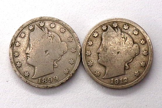 (2) Liberty Head V Nickels 1899 & 1912 (BOTH Some Liberty)