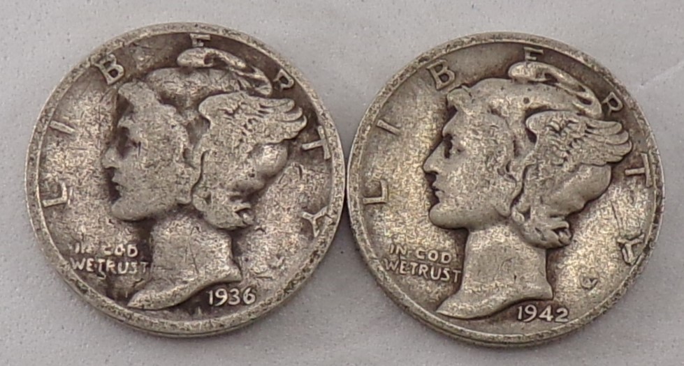(2) Mercury Silver Dimes 1936 & 1942