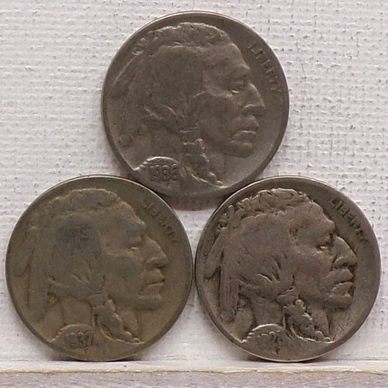 (3) Buffalo Nickels 1928-S, 1936 & 1937-D