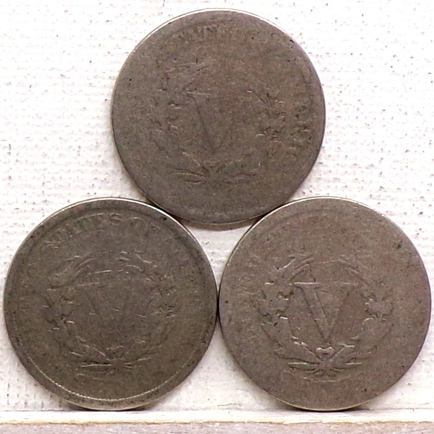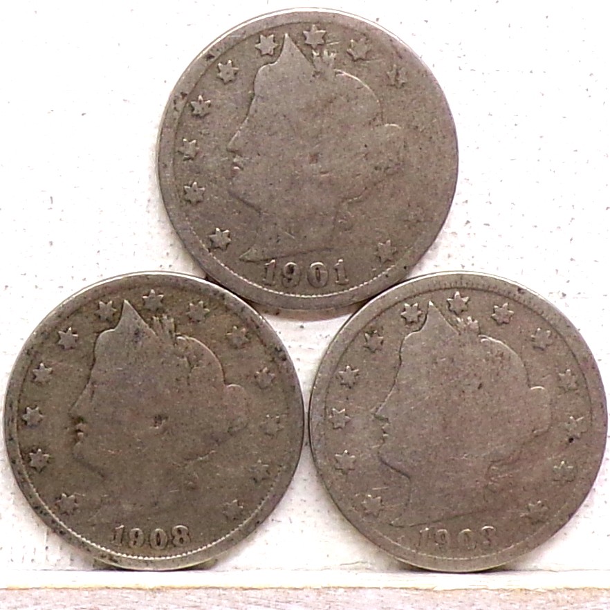 (3) Liberty Head V Nickels 1901, 1903 & 1908