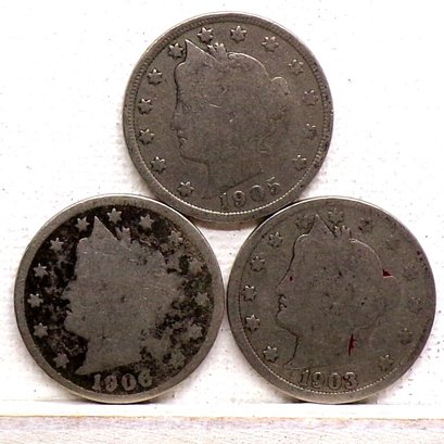 (3) Liberty Head V Nickels 1903, 1905 & 1906