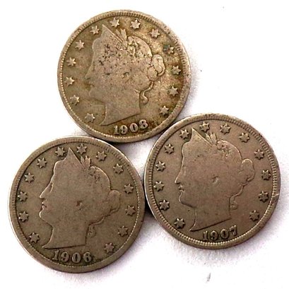 (3) Liberty Head V Nickels 1906, 1907 & 1908