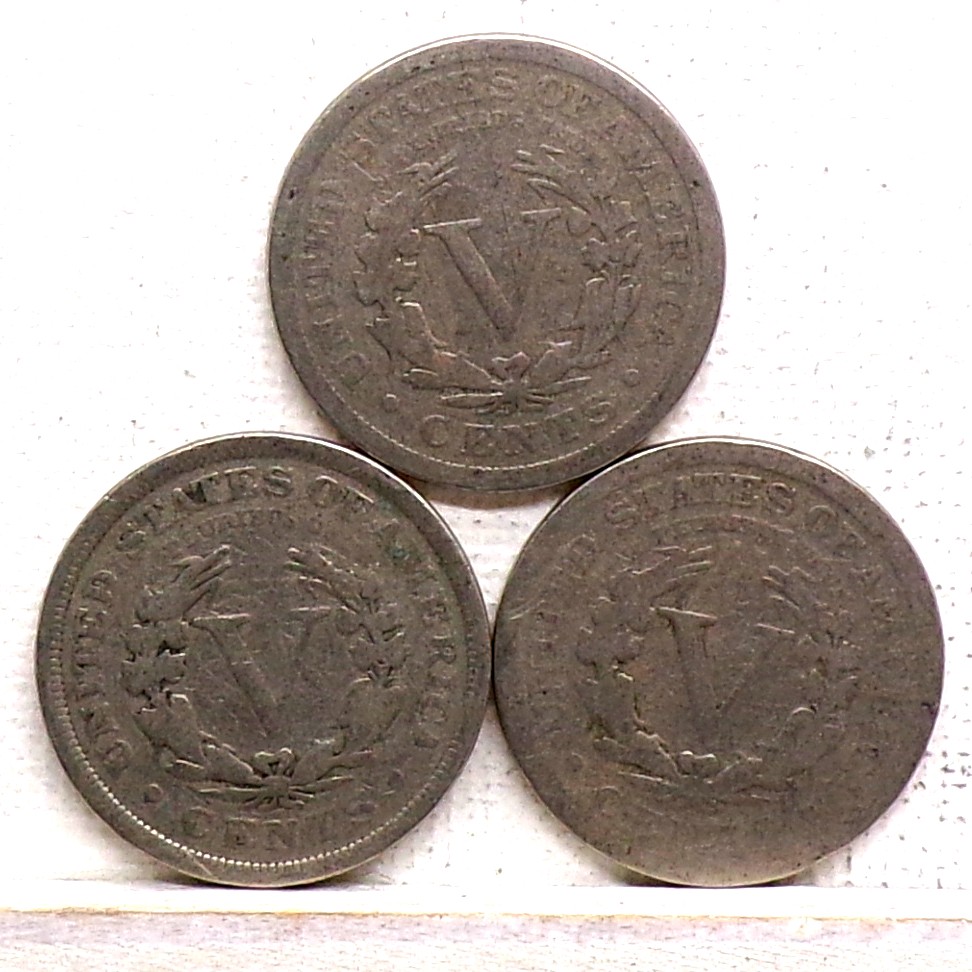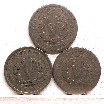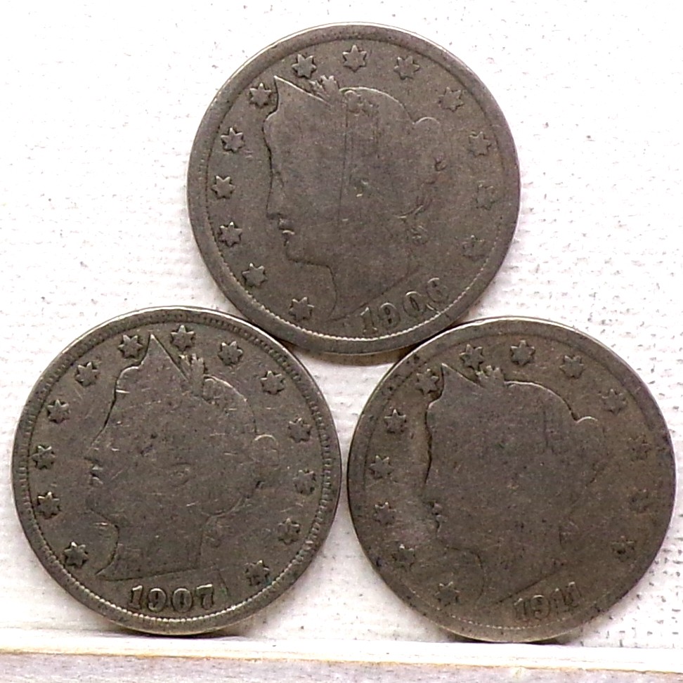 (3) Liberty Head V Nickels 1906, 1907 & 1911