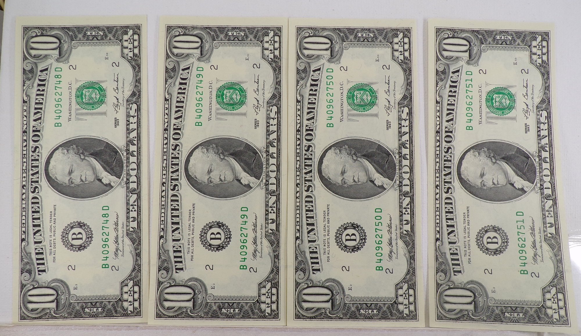 (4) Four Consecutive Serial Number 1993 $10 Federal Reserve Notes Gem Crisp Uncirculated