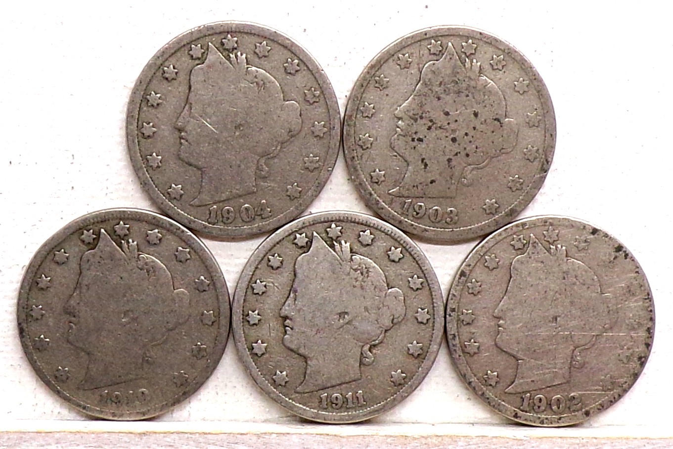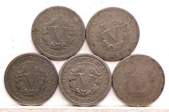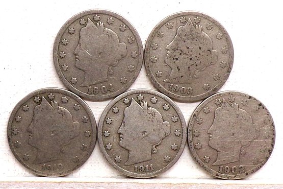 (5) Liberty Head V Nickels 1902, 1903, 1904, 1910 & 1911