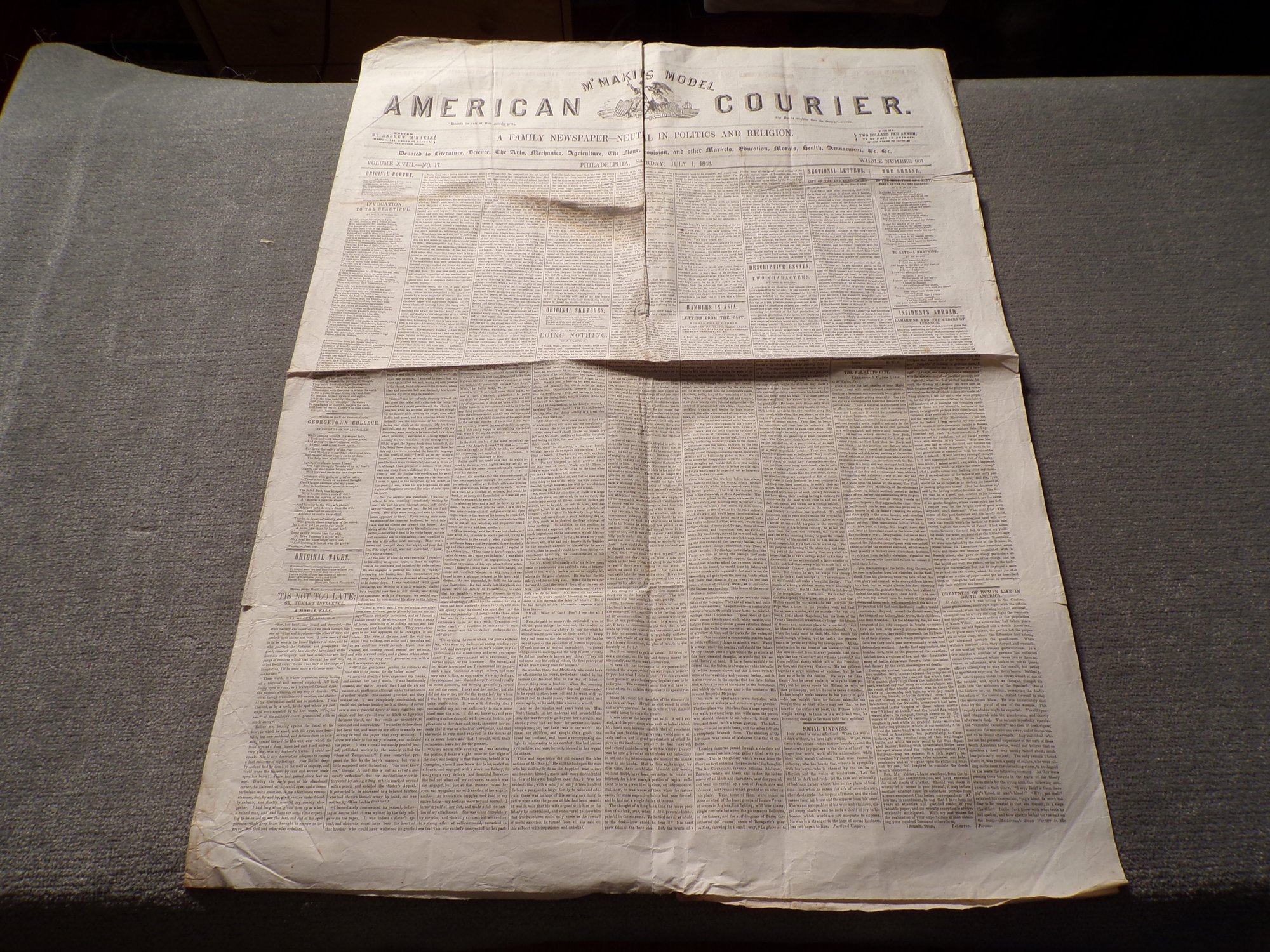 Authentic & Excellent Condition; Saturday July 1, 1848, American Courier "Philadelphia" Newspaper