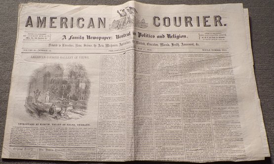 Authentic & Excellent Condition; Saturday May 17, 1856, American Courier "Philadelphia" Newspaper