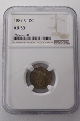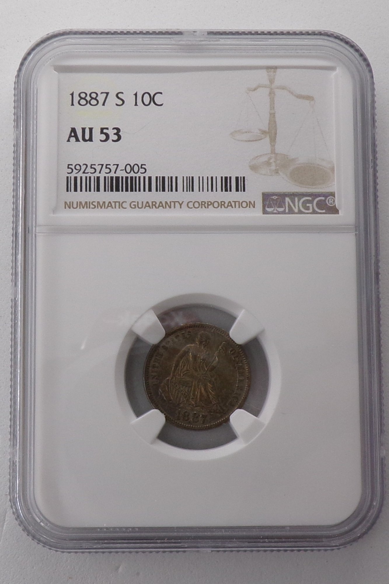 Beautiful 1887-S Seated Liberty Silver Dime (NGC AU-53)