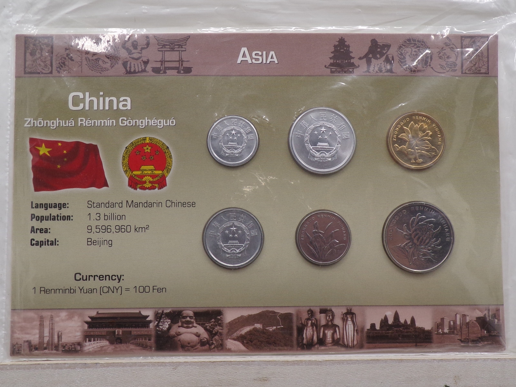 GEM Brilliant Uncirculated China Coin Set In Custom Holder, 6 Coins