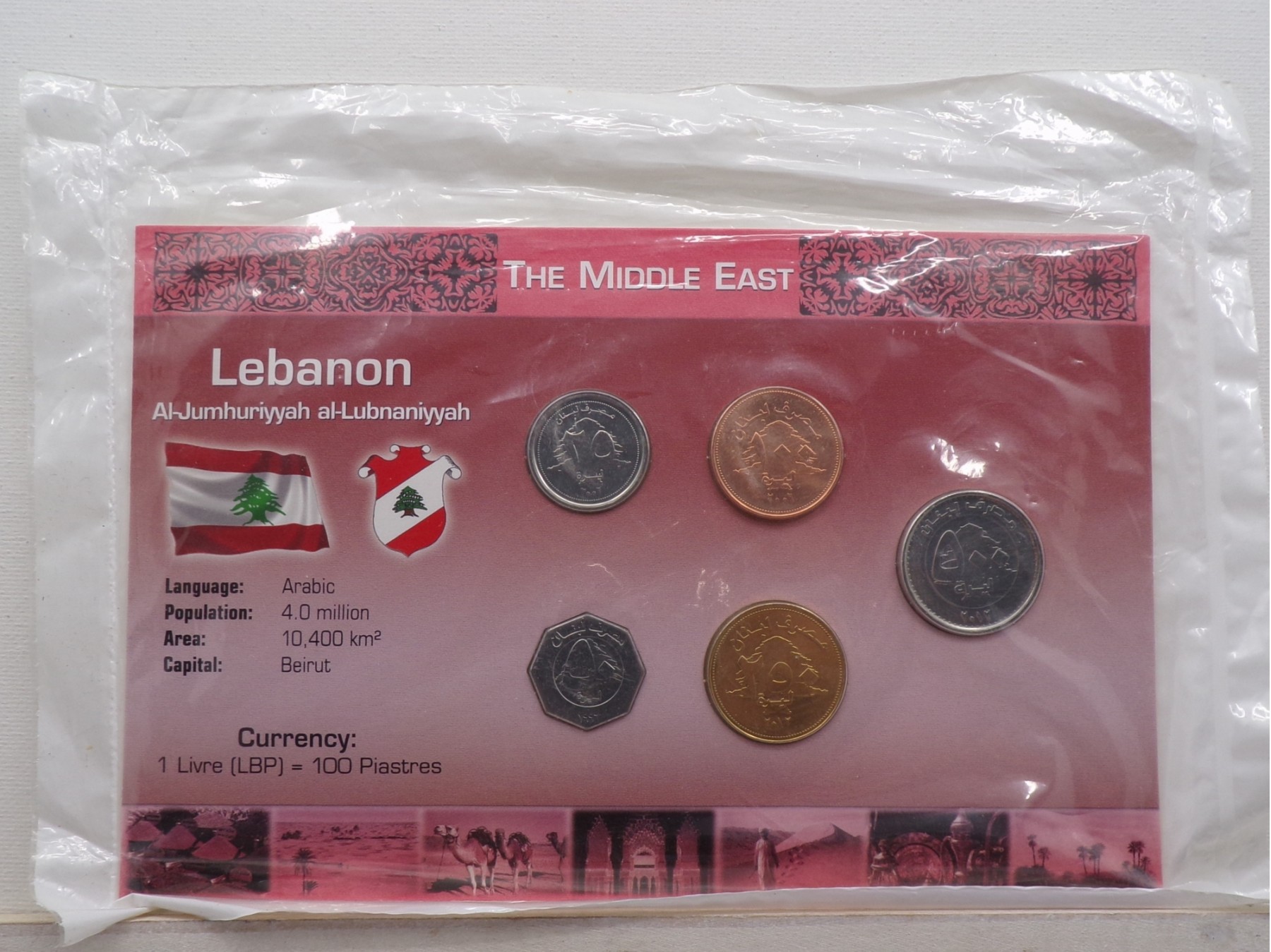 GEM Brilliant Uncirculated Lebanon Coin Set In Custom Holder, 5 Coins