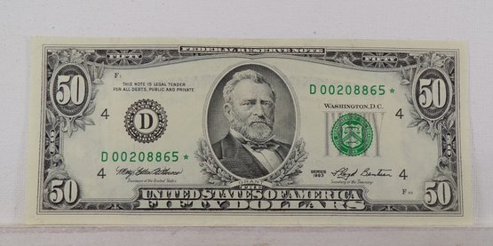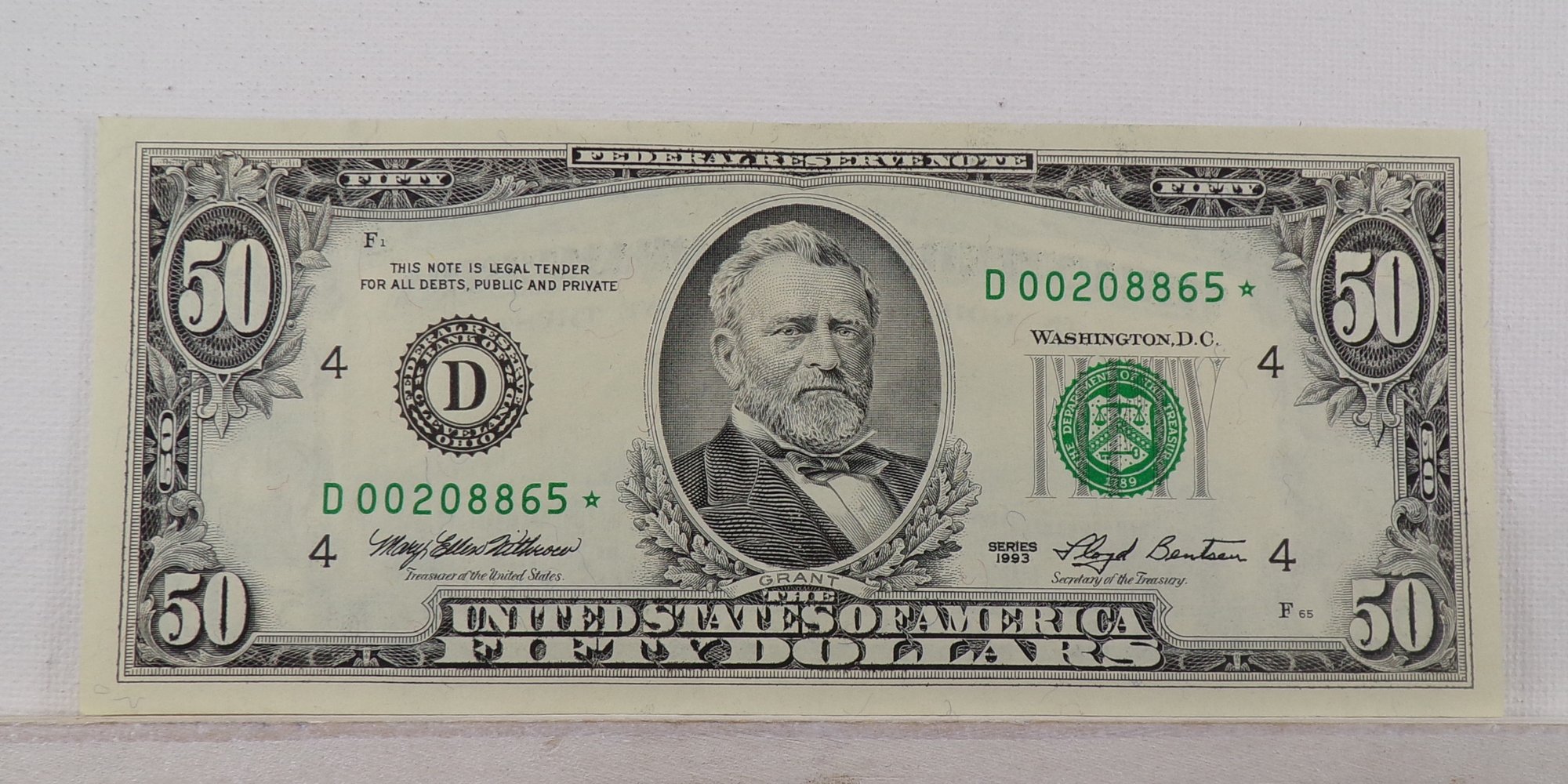 Semi-Rare Star Note, 1993 $50 Federal Reserve Star Note, (Smaller Run Size) GEM Crisp Uncirculated