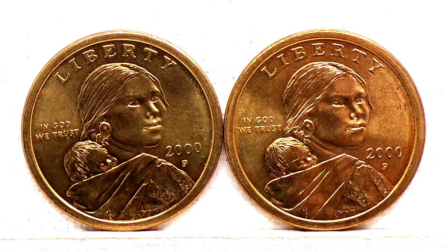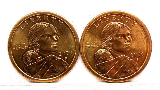 Two (2) GEM BU 2000-P Sacagawea Golden Dollars