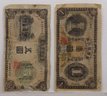 Two Vintage WWII Japanese Banknotes, One Yen & Five Yen