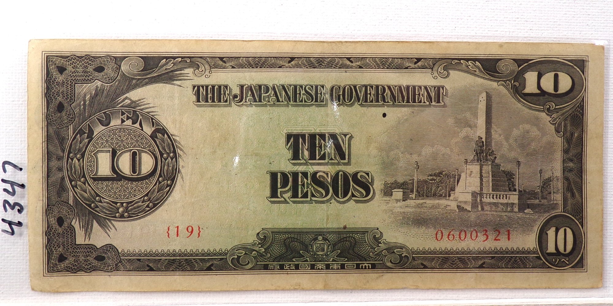 WWII 1942-1945 Japanese Government-10 Pesos "Philippines"