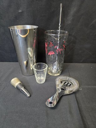 Vintage Cocktail Shaker & Accessories