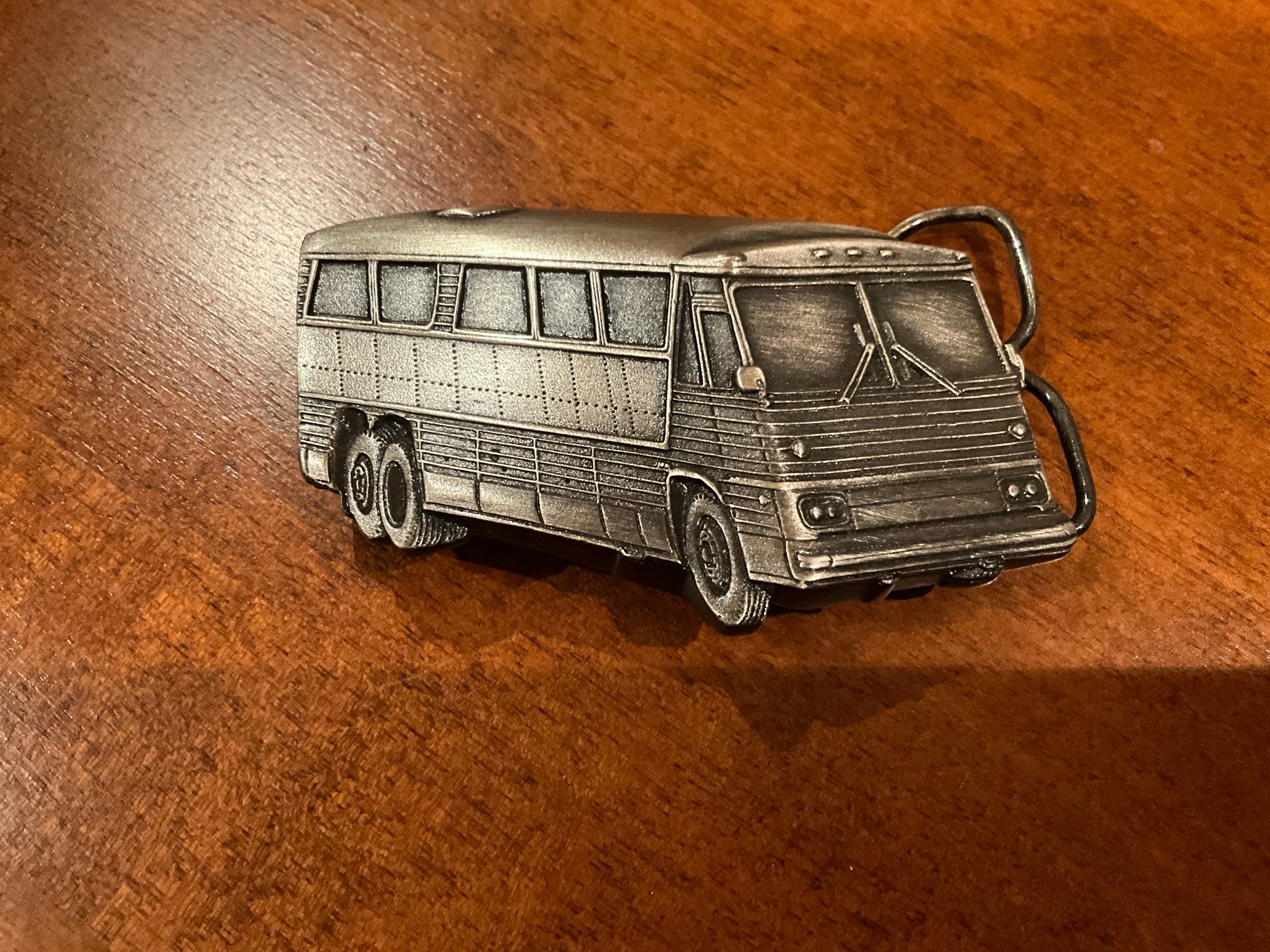 1978 PEWTER BERGAMOT BRASS WORKS CITY BUS BELT BUCKLE MADE IN USA