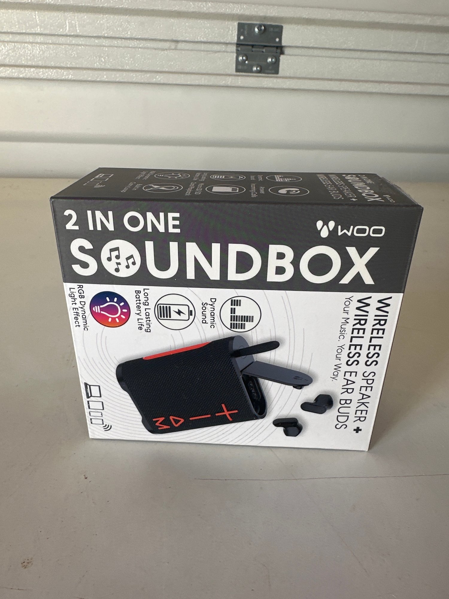 2 In One Woo Sound Box Wireless Speaker And Ear Buds Brand New In The Box Never Used Great For Anywhere