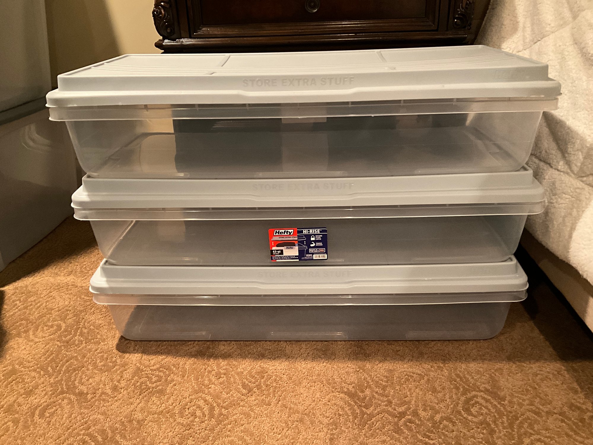 3 X Hefty Hi Rise Secure Click Latch 63 Quart Under Bed Stackable Storage Totes