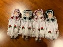4 VINTAGE 8 Inch Dolls In WHITE LACE TRIMMED DRESS With BONNET