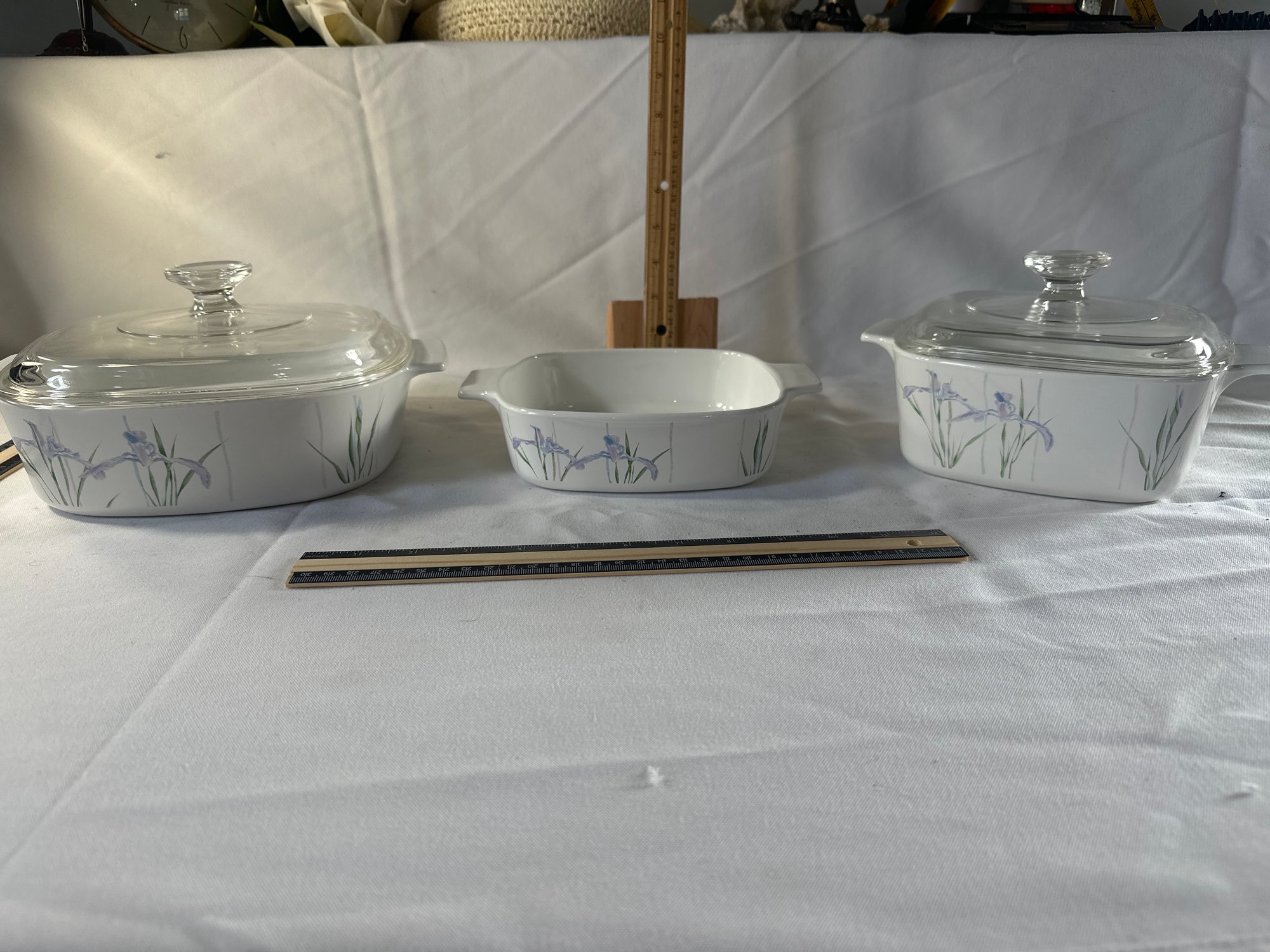 5 Piece Set Of Corning Ware Shadow Iris 3 Liter 1.5 Liter With Lids And 1 Liter Casserole Dishes