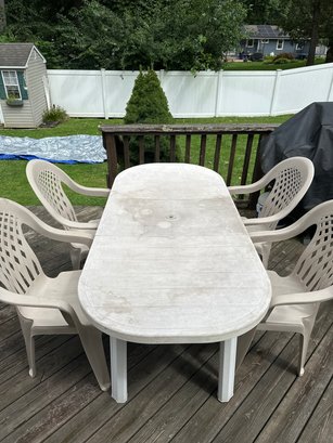 72 Inch White Plastic Expandable Has 18 In Leaf Outdoor Oval Table With Four Chairs Plus Cover