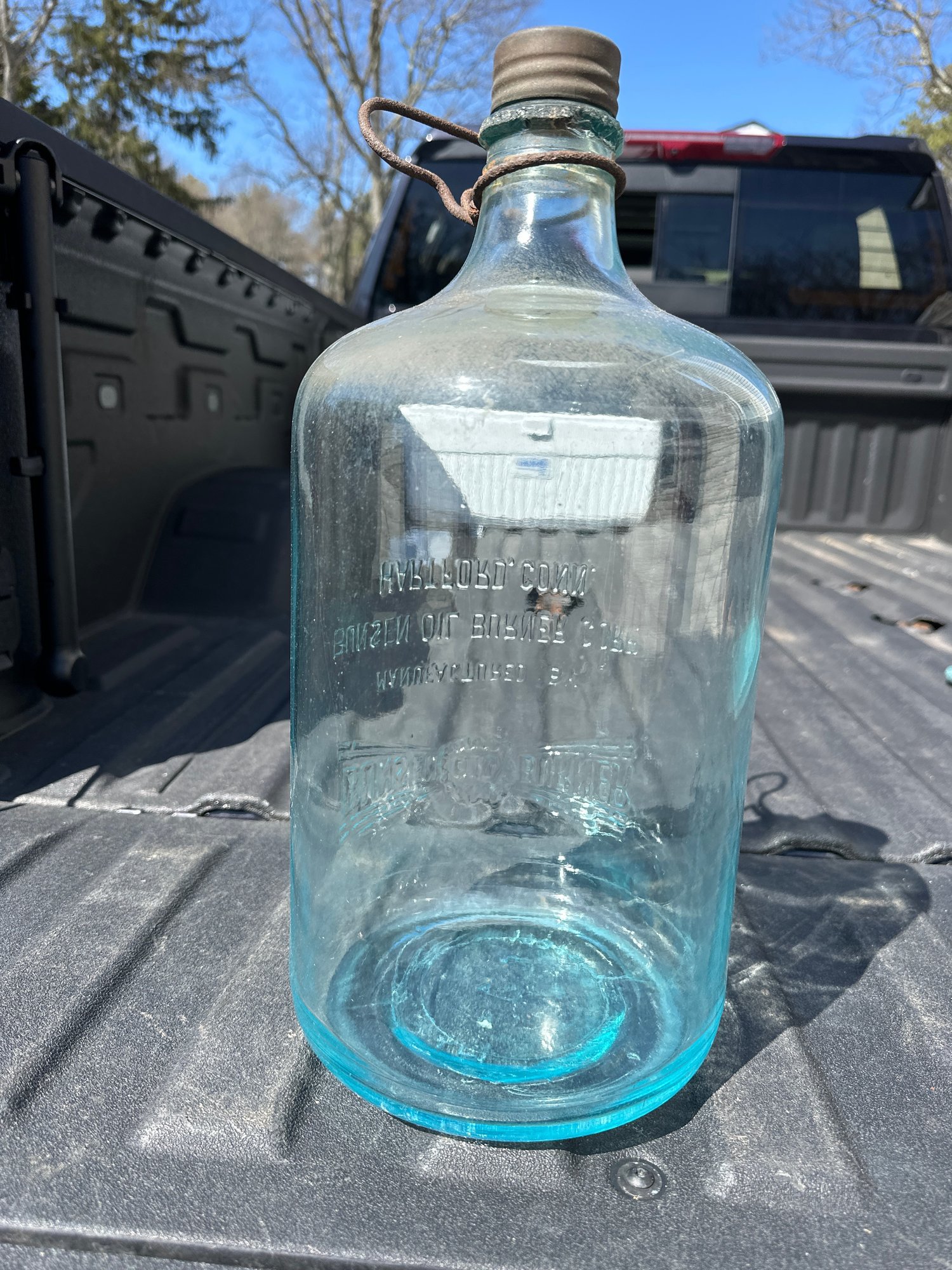 Beautiful Blue Bunsen Oil Burner Corp Hartford Conn. Bottle 1931 Great Display Piece In Very Nice Shape
