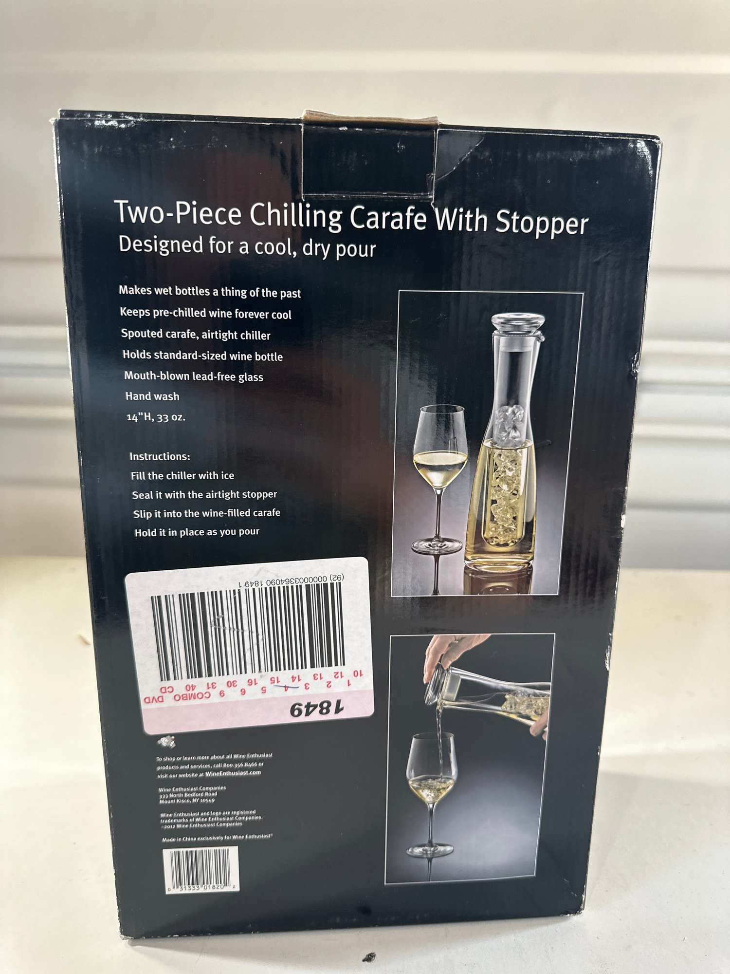 Brand New In The Box Two Piece Chilling Carafe With Stopper Designed For A Cool Dry Pour