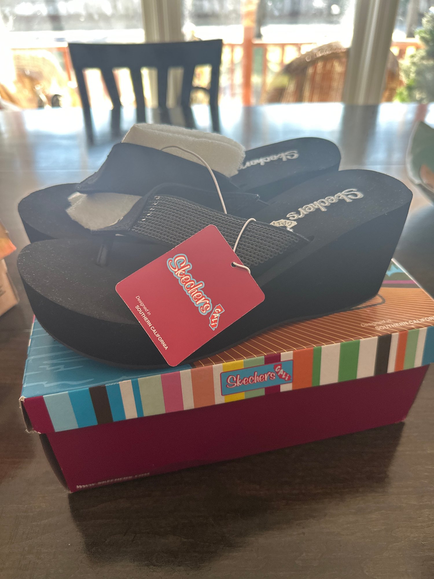 Brand New SKECHERS Cali Platform Wedge Flip Flop Sandals Size 7