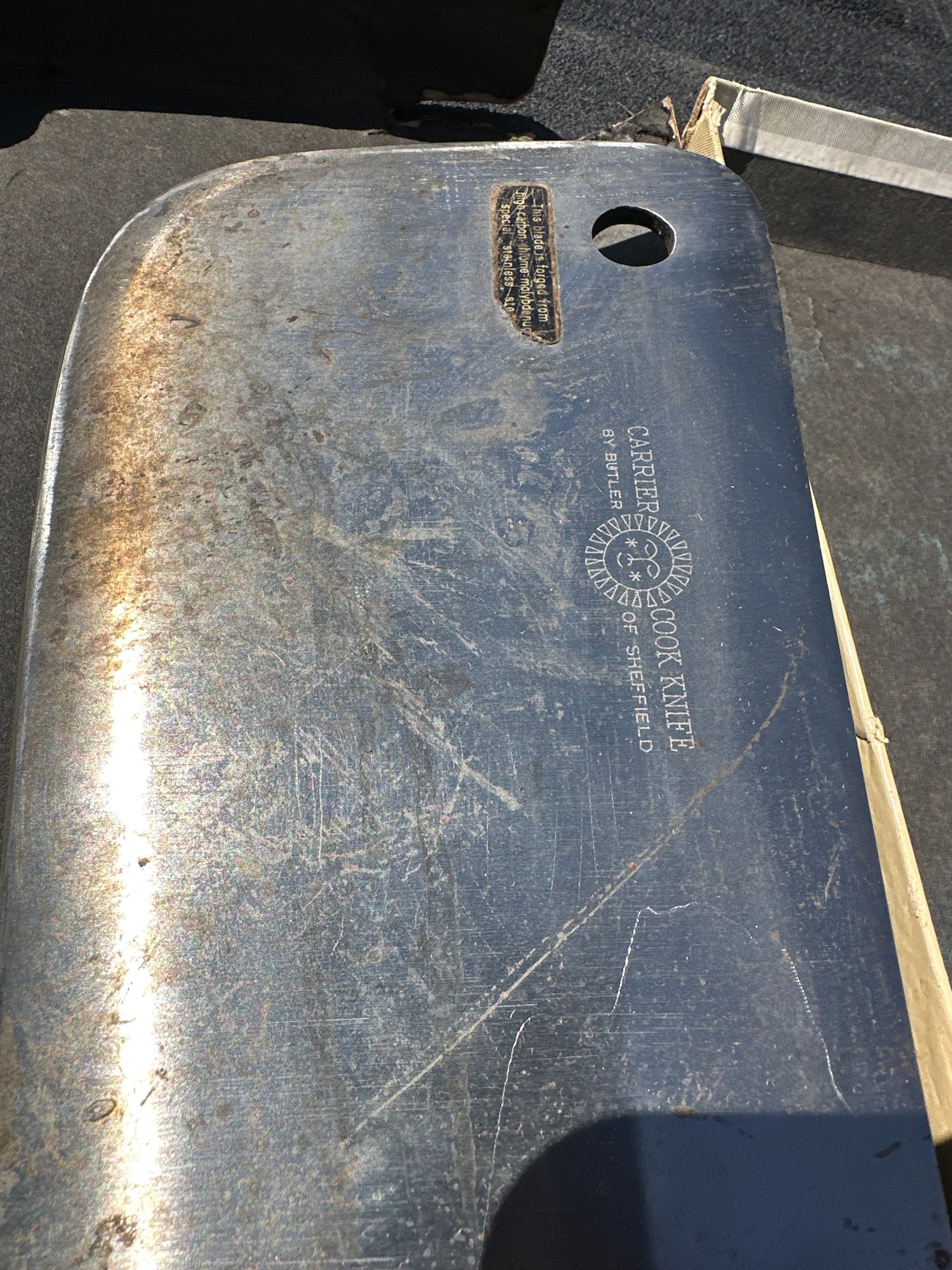 Carrier Cook Knife By Sheffield 12x6 Inch Cleaver Very Sharp Nice Piece