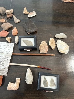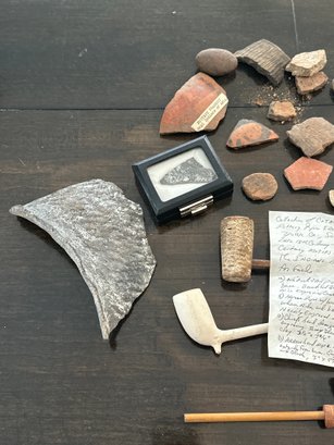 Collection Of American Indian Pottery, Fossils Tools, Pipes See Photos