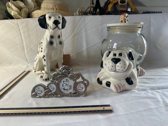 Cute Dog Lot Cookies Treats Jar Dalmatian Figurine And Frame