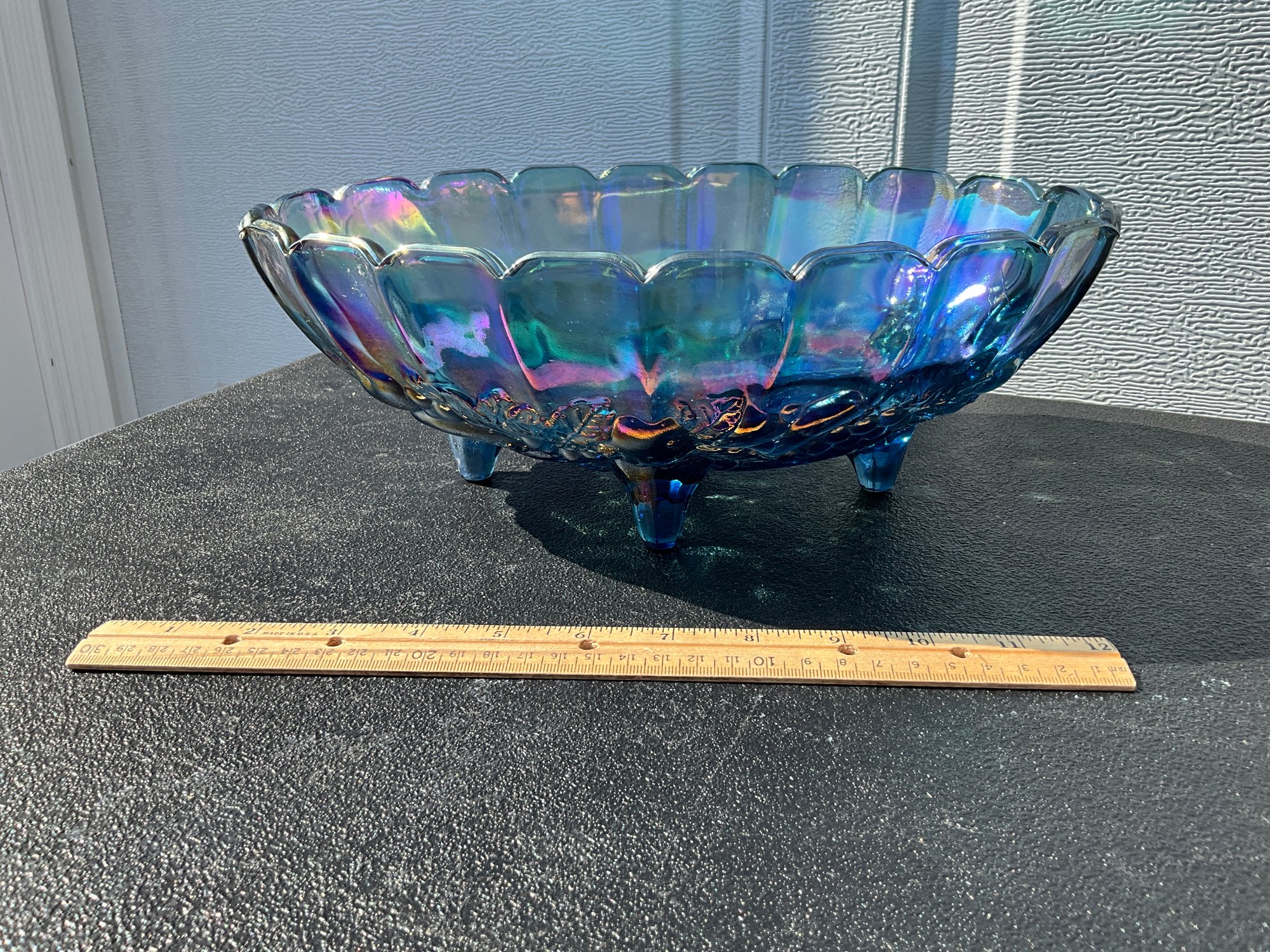 Indiana Vintage Carnival Glass Footed Oval Fruit Bowl Blue Iridescent
