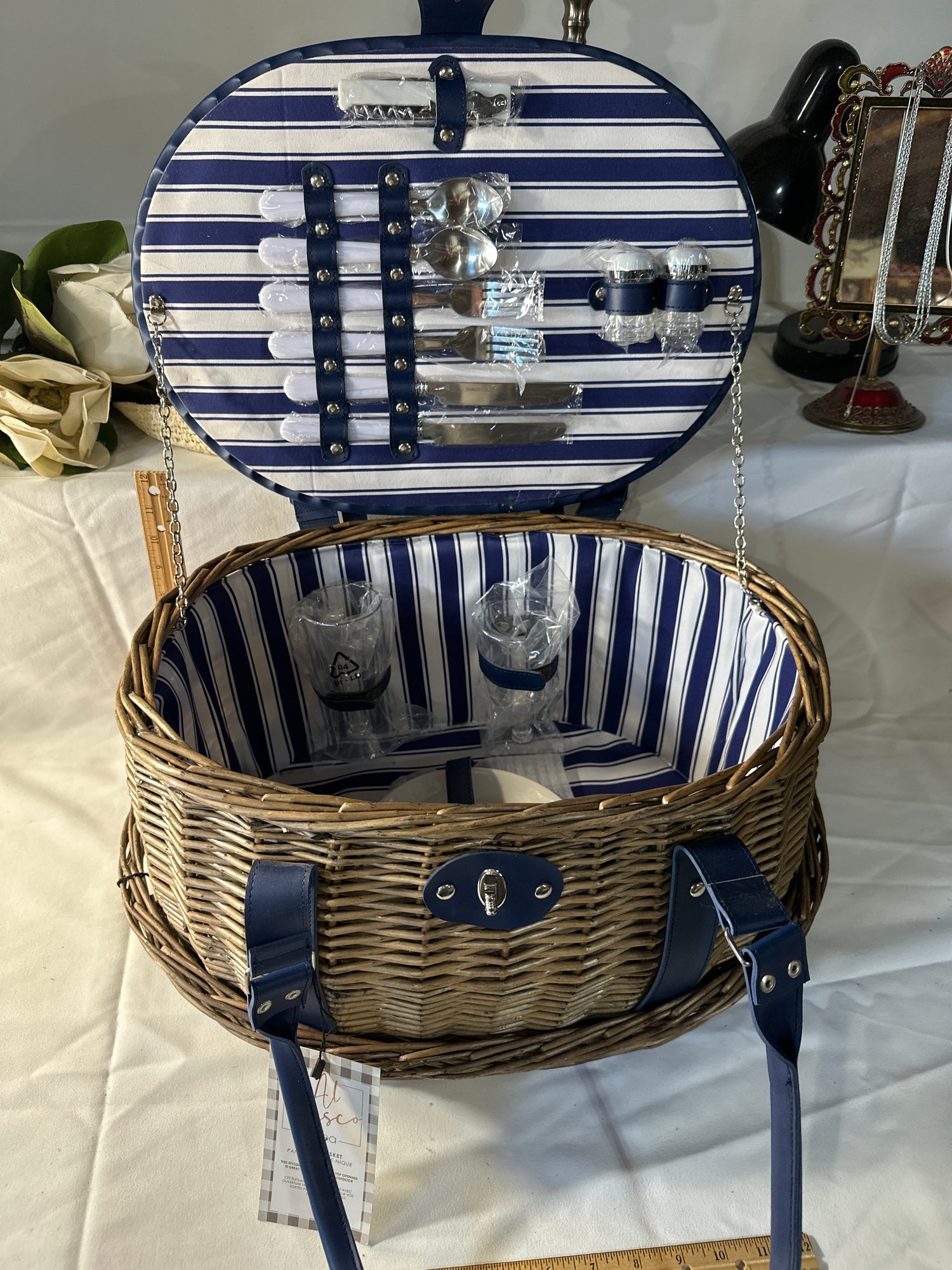 New Citoa Alfresco Picnic Basket For 2 Utensils Corkscrew Salt And Pepper Shakers Plates Cups Serving Tray