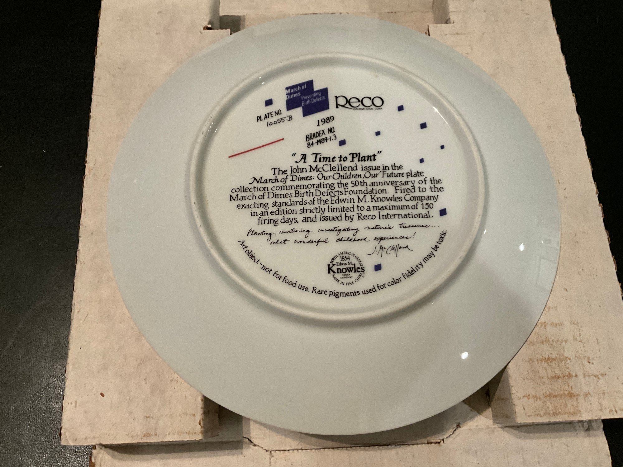 John McClelland Decorative Plate - A Time To Plant - Edwin Knowles - March Of Dimes - Reco - Bradex - Limited