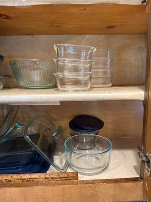 Kitchen Cabinet Lot Glass Bakeware Storage Serving Bowls Casserole Dishes Pie Dish, Pyrex And More See Photos