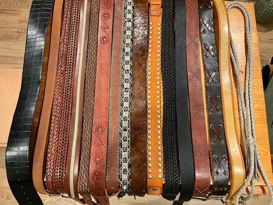 Large Lot Of 17 Belts Many Genuine Leather Assorted Sizes