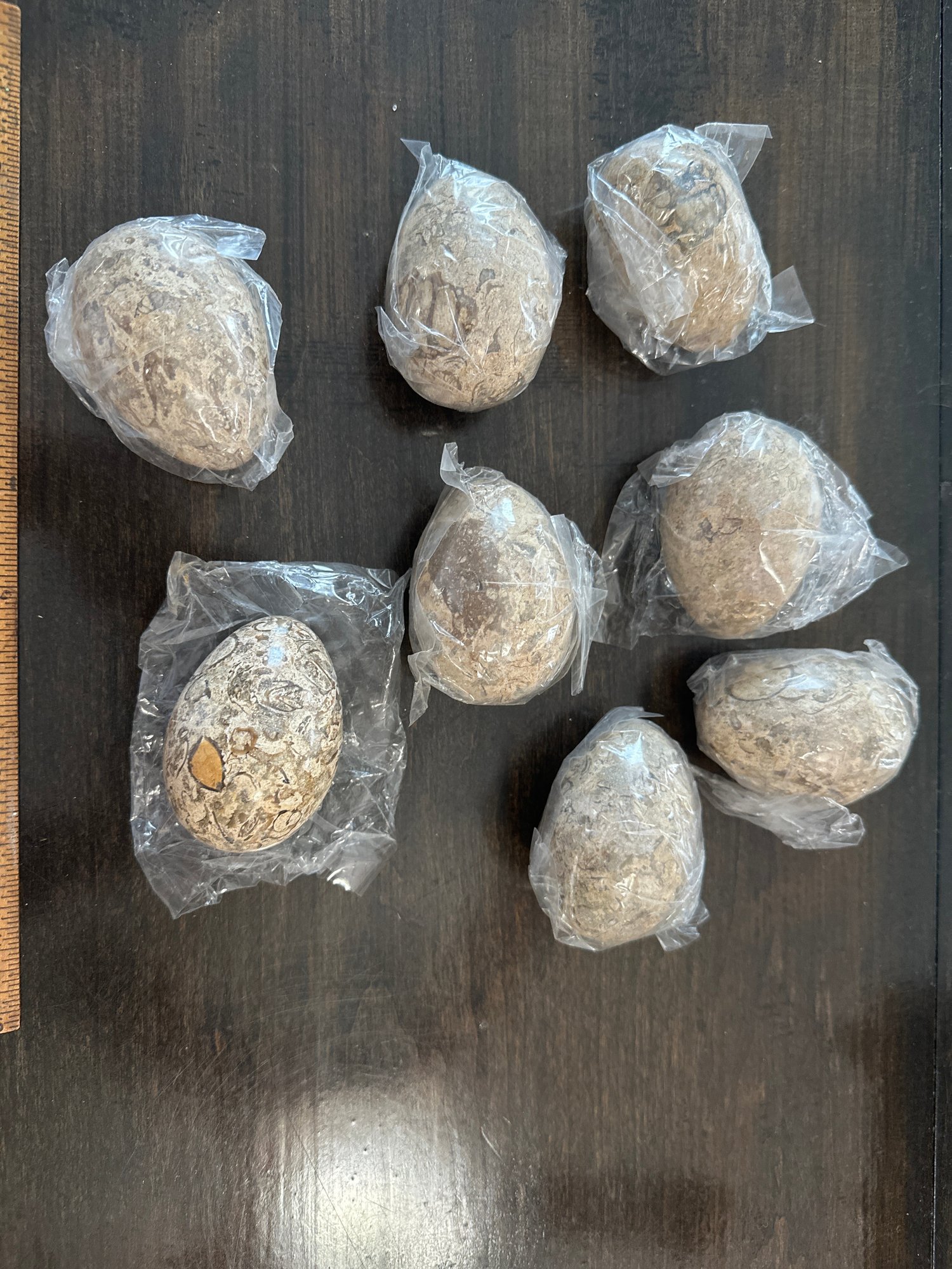 Lot Of 8 Polished Fossilized Stone Eggs With Intricate Natural Patterns Beige Brown