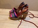 Marc By Marc Jacobs Multicolor Fabric Platform Ankle Wrap Sandals Size 37