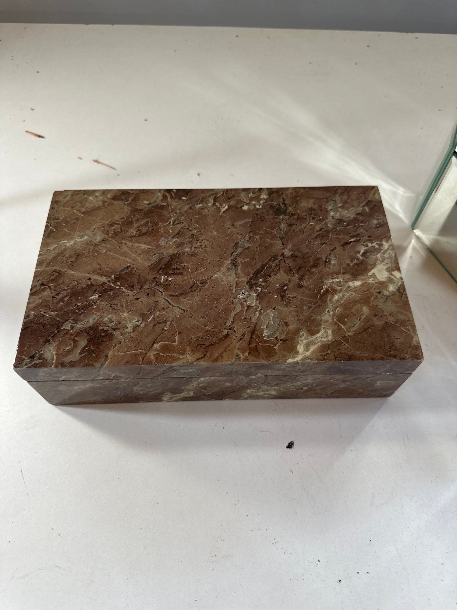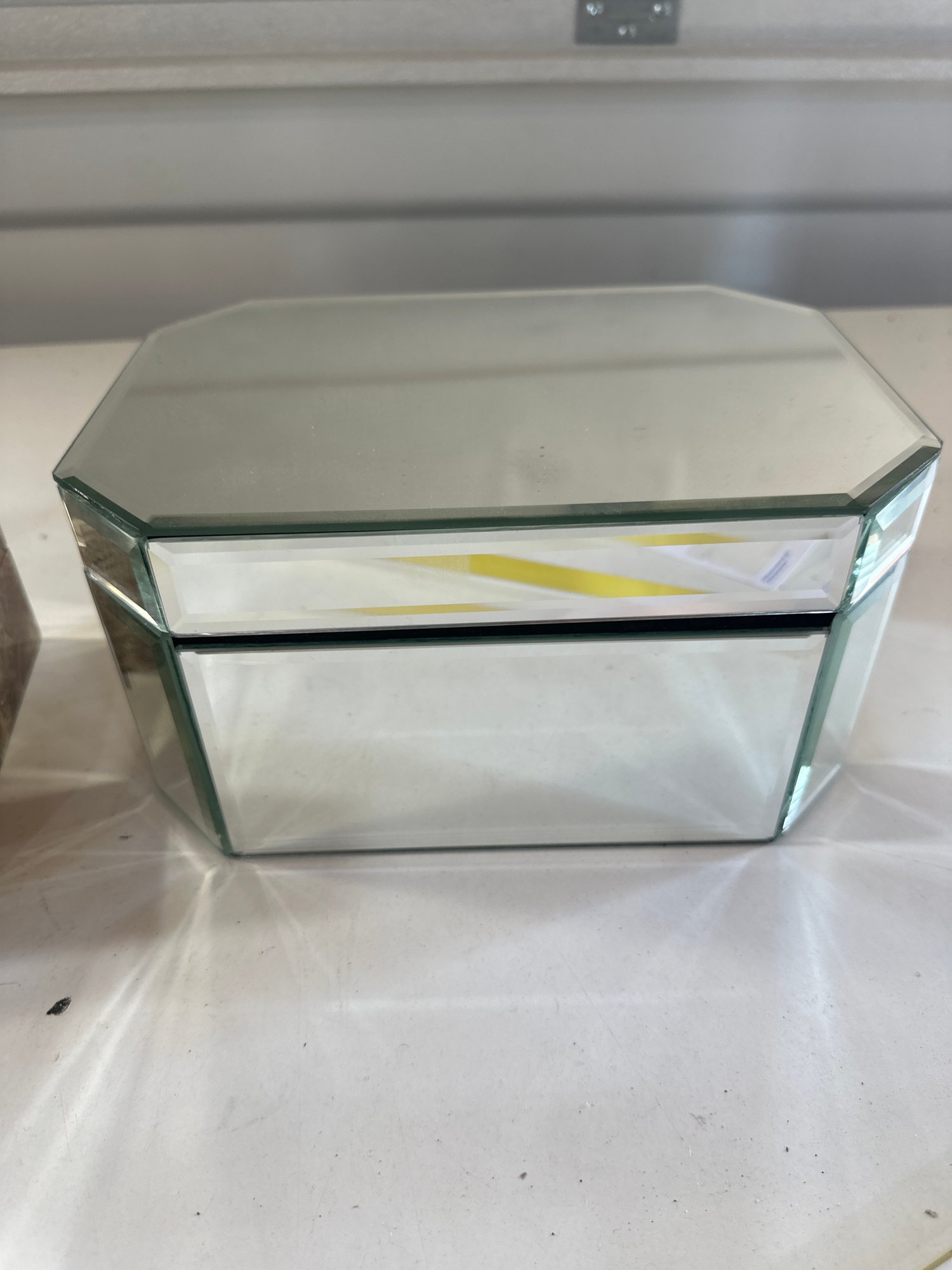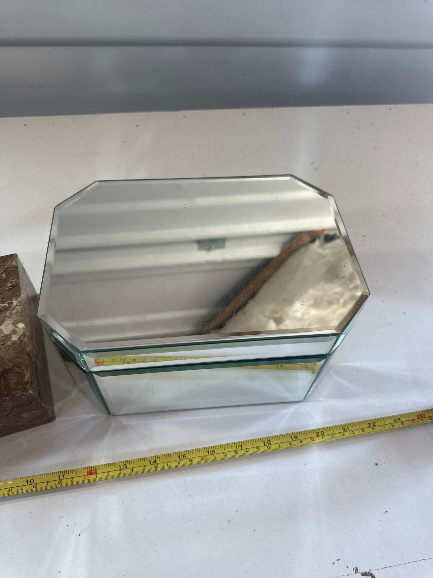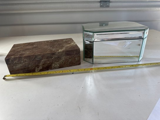 Mirrored Glass Jewelry Box And Plastic Marble Box Great For The Dresser Or Nightstand