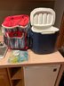 One Backpack And Rolling Cooler One Coleman Rolling Cooler With 30 Reusable Ice Cubes