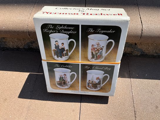 Norman Rockwell Classic Mug Gift Set Japan4 Piece Set 24k Gold Trim New In Box
