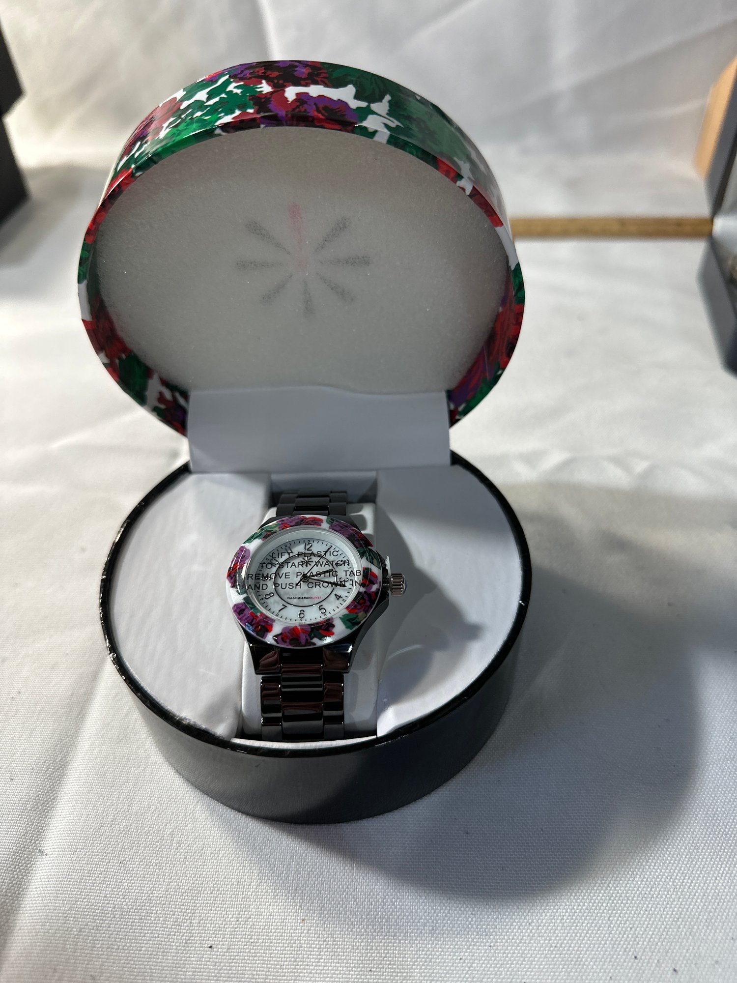 Isaac Mizrahi Live! Ceramic Watch With Floral Printed Bezel Black Brand New