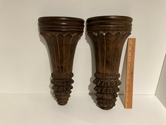 Set Of 2 Floating Ornately Carved Wood Wall Shelf Sconce