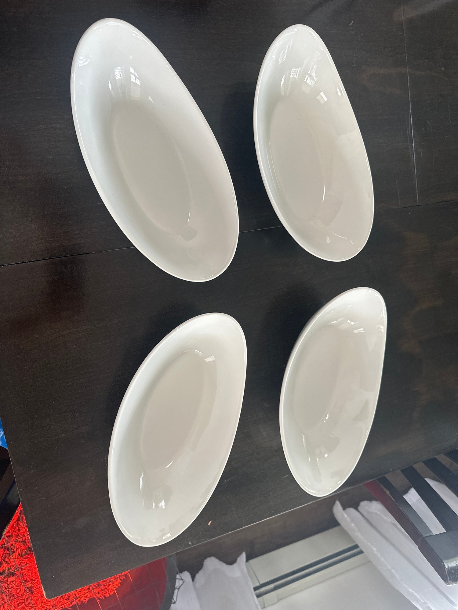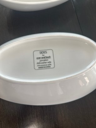 Set Of 4 Over And Back Sides White 12 In Serving Bowl Boat Shape