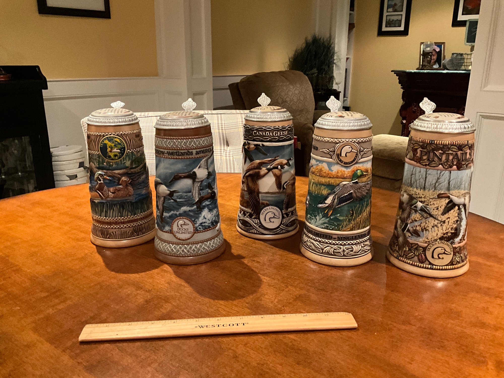 Set Of 5 Ducks Unlimited Lidded Beer Steins