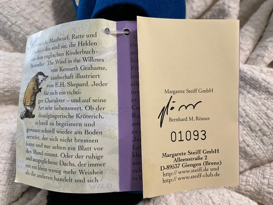 Steiff Wind In The Willows Mole Limited Edition, Mohair, Made In Germany. Rare Collector