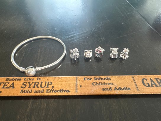 Sterling Silver Pandora Moments Bangle And 5 Charms