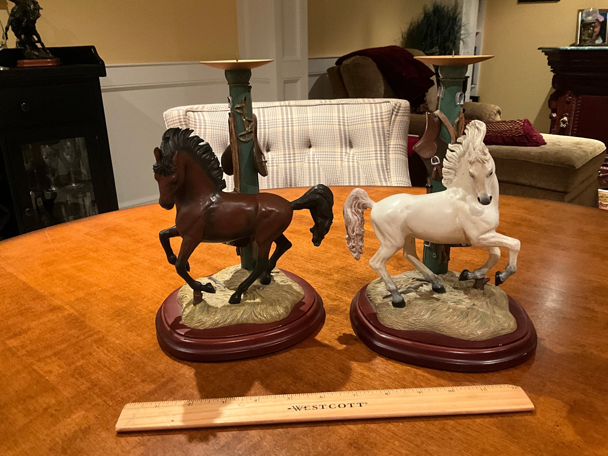 The Danbury Mint Noble Stallions Candlesticks Set By Gianni Benvenuti Horse Western Figure Stand