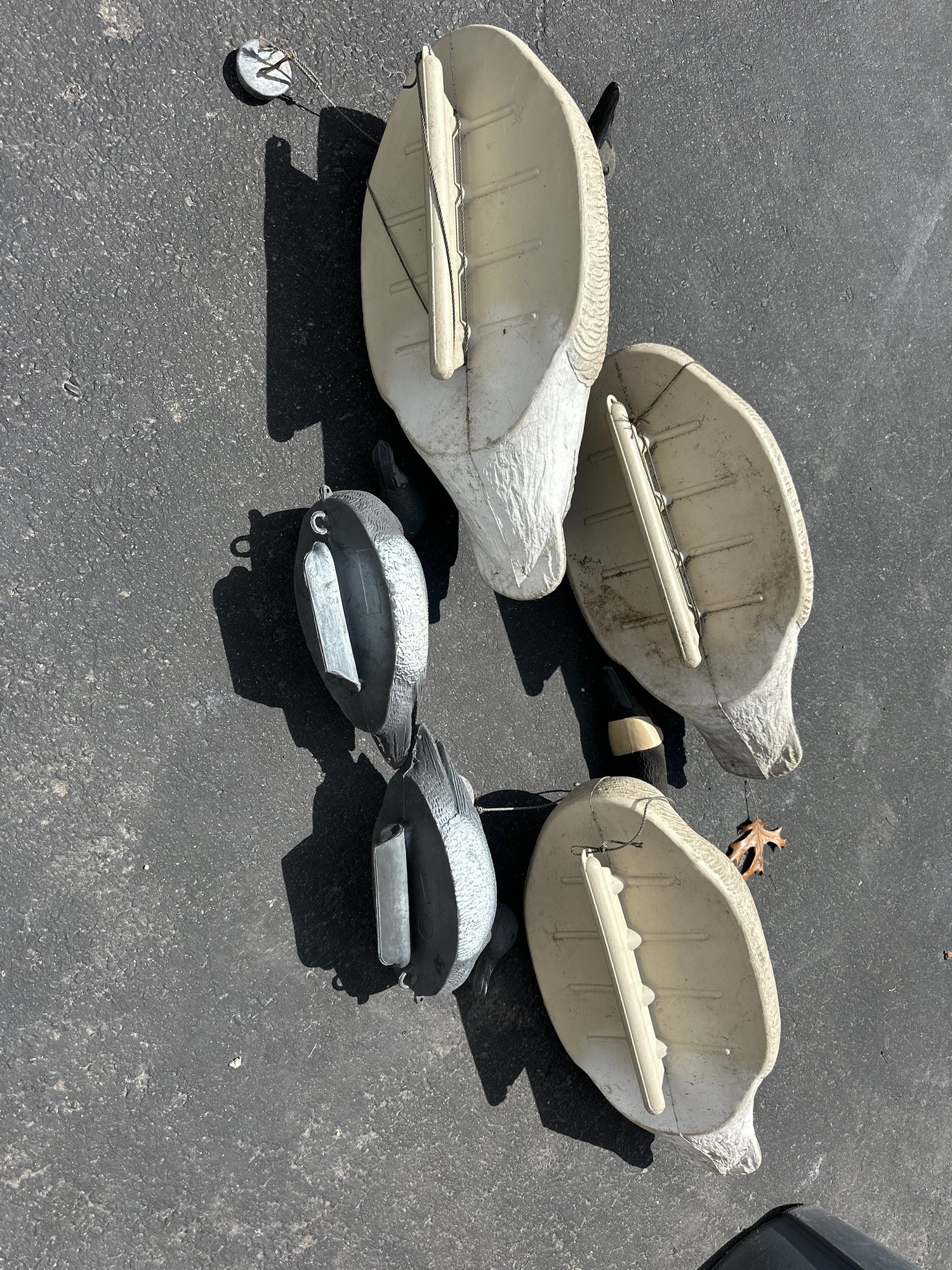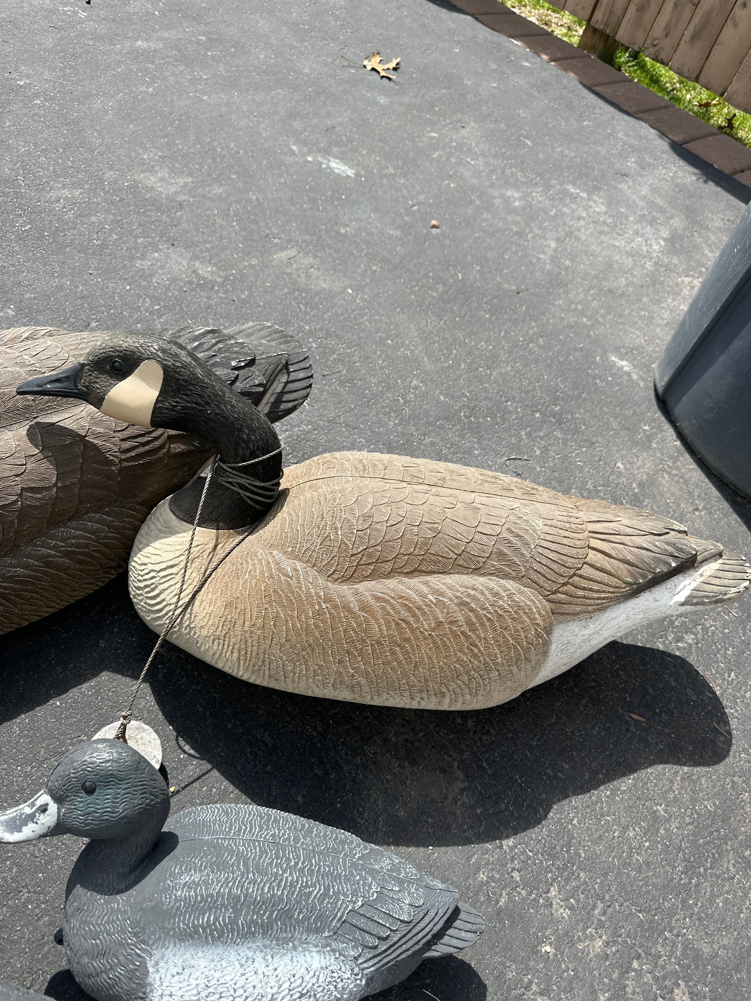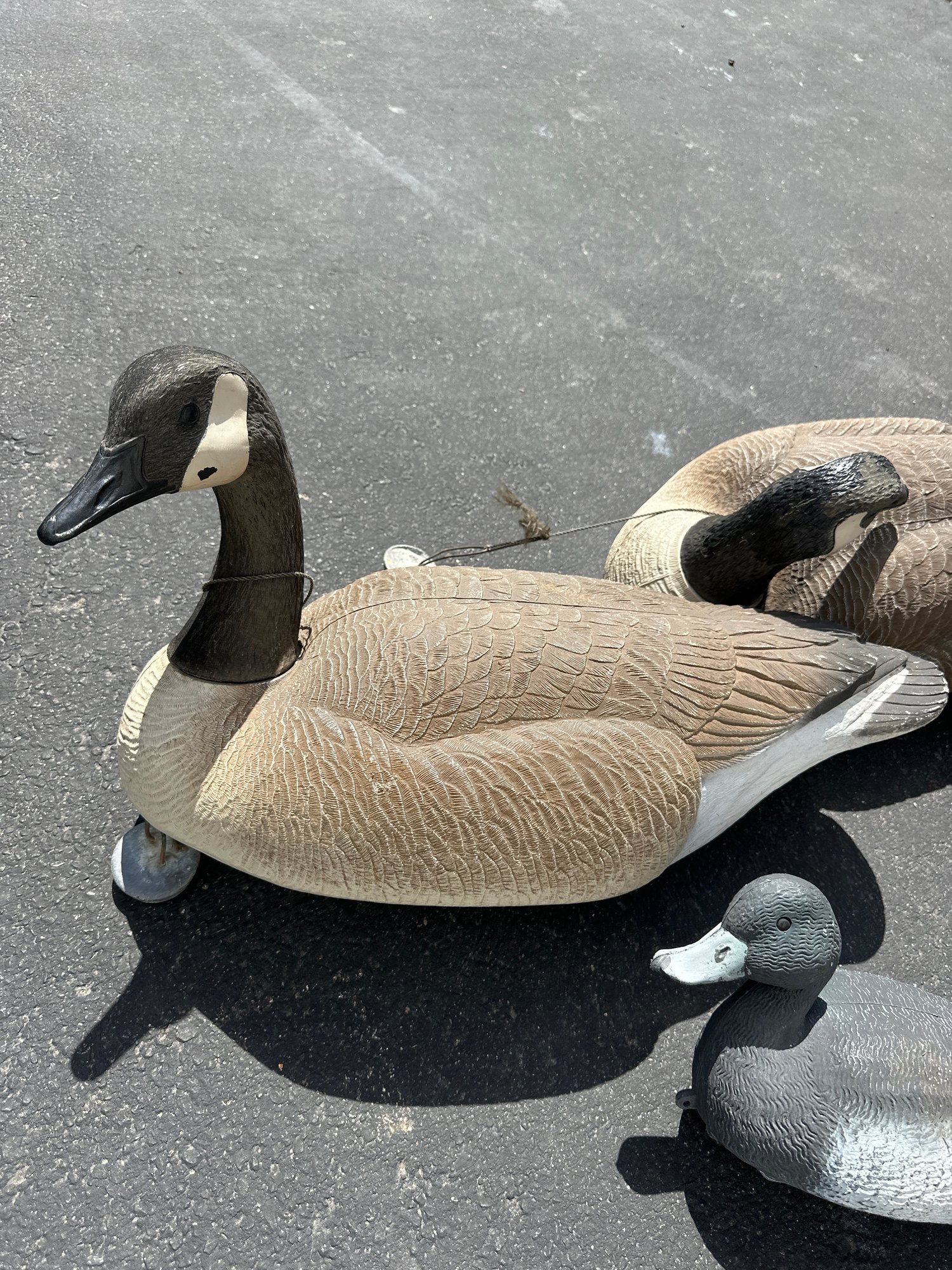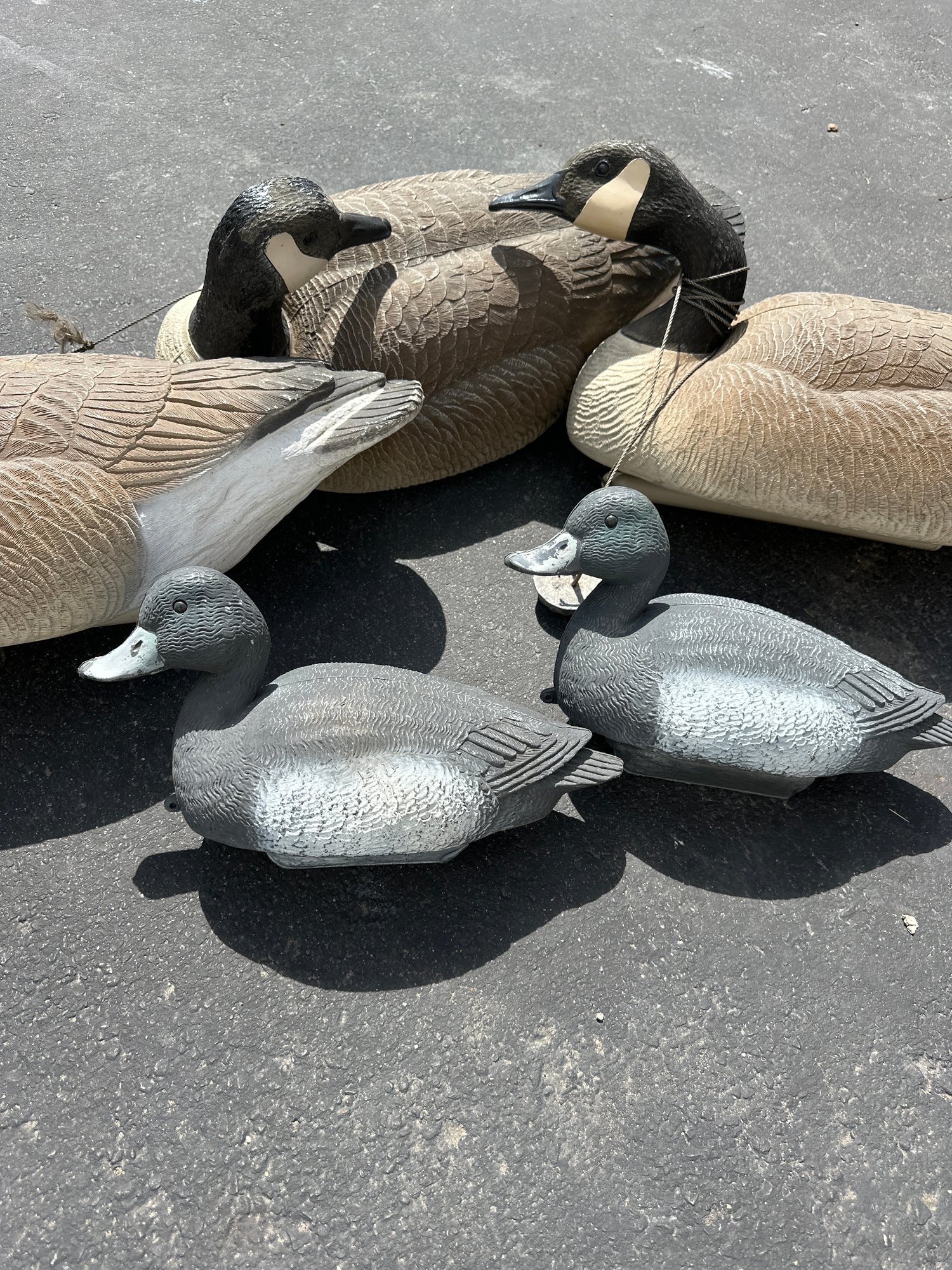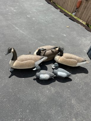 Three Geese Decoys With Weights Two Blue Bill Decoys Use Them To Hunt Or For Lawn Decorations Nice Set