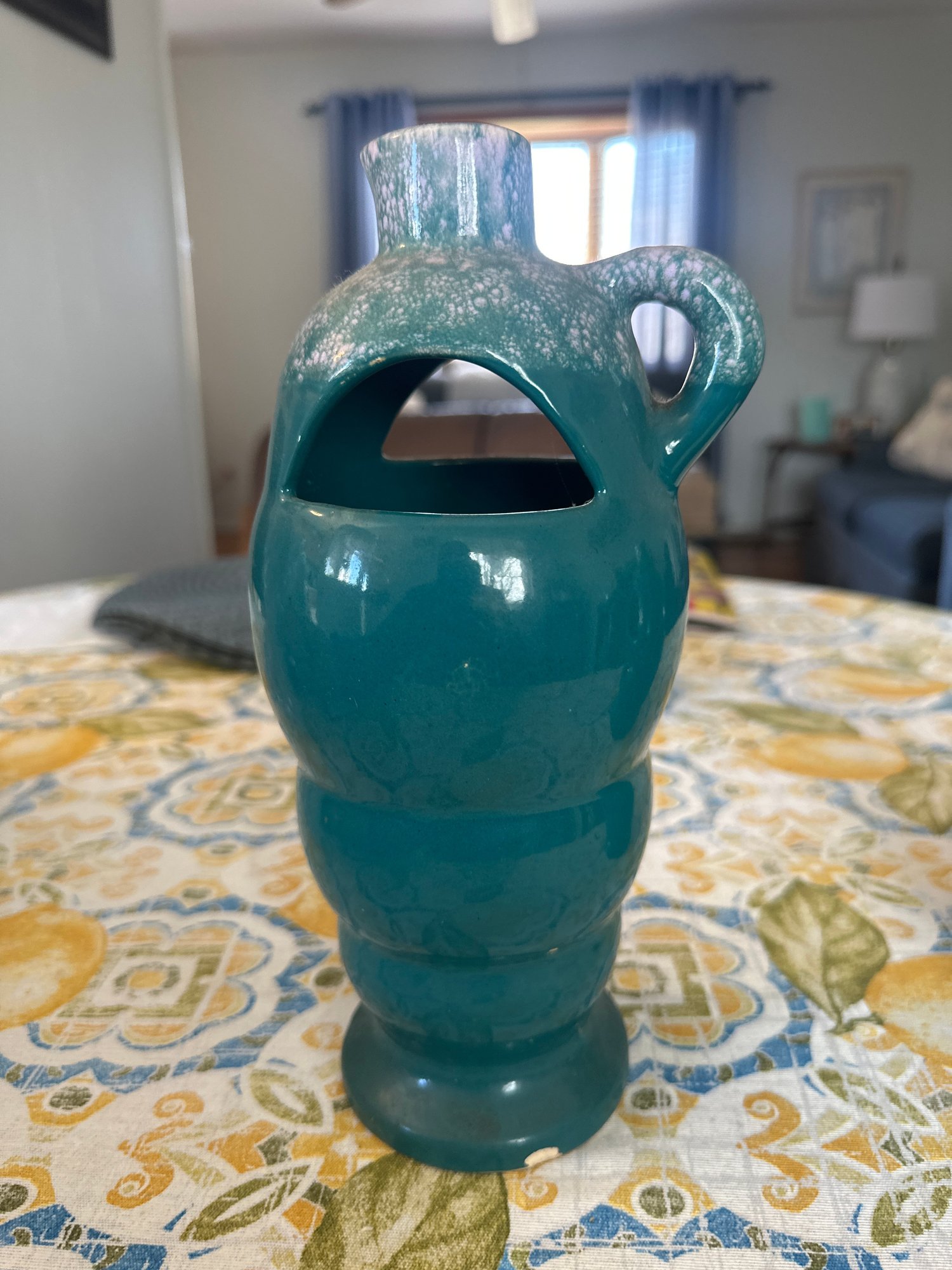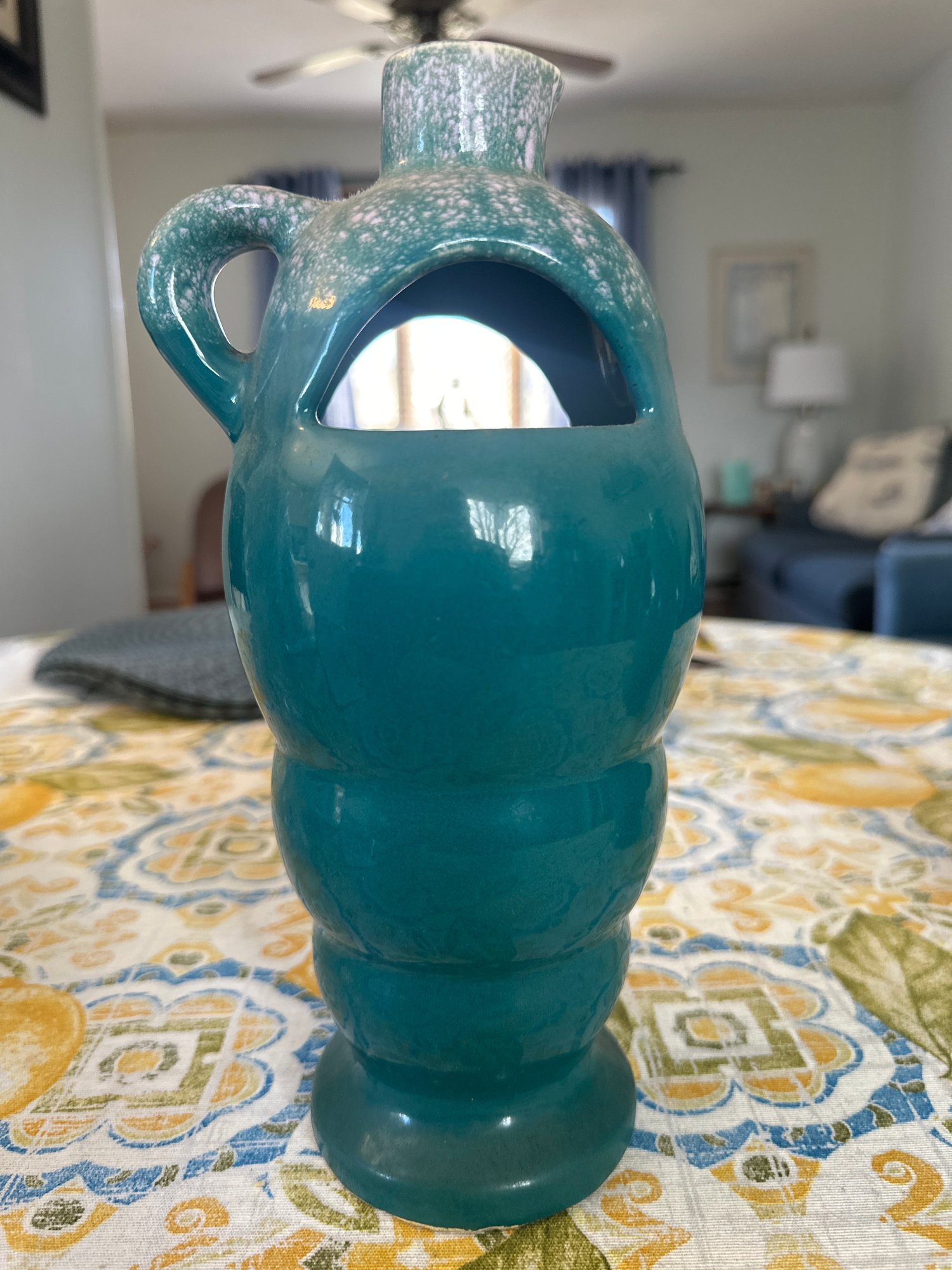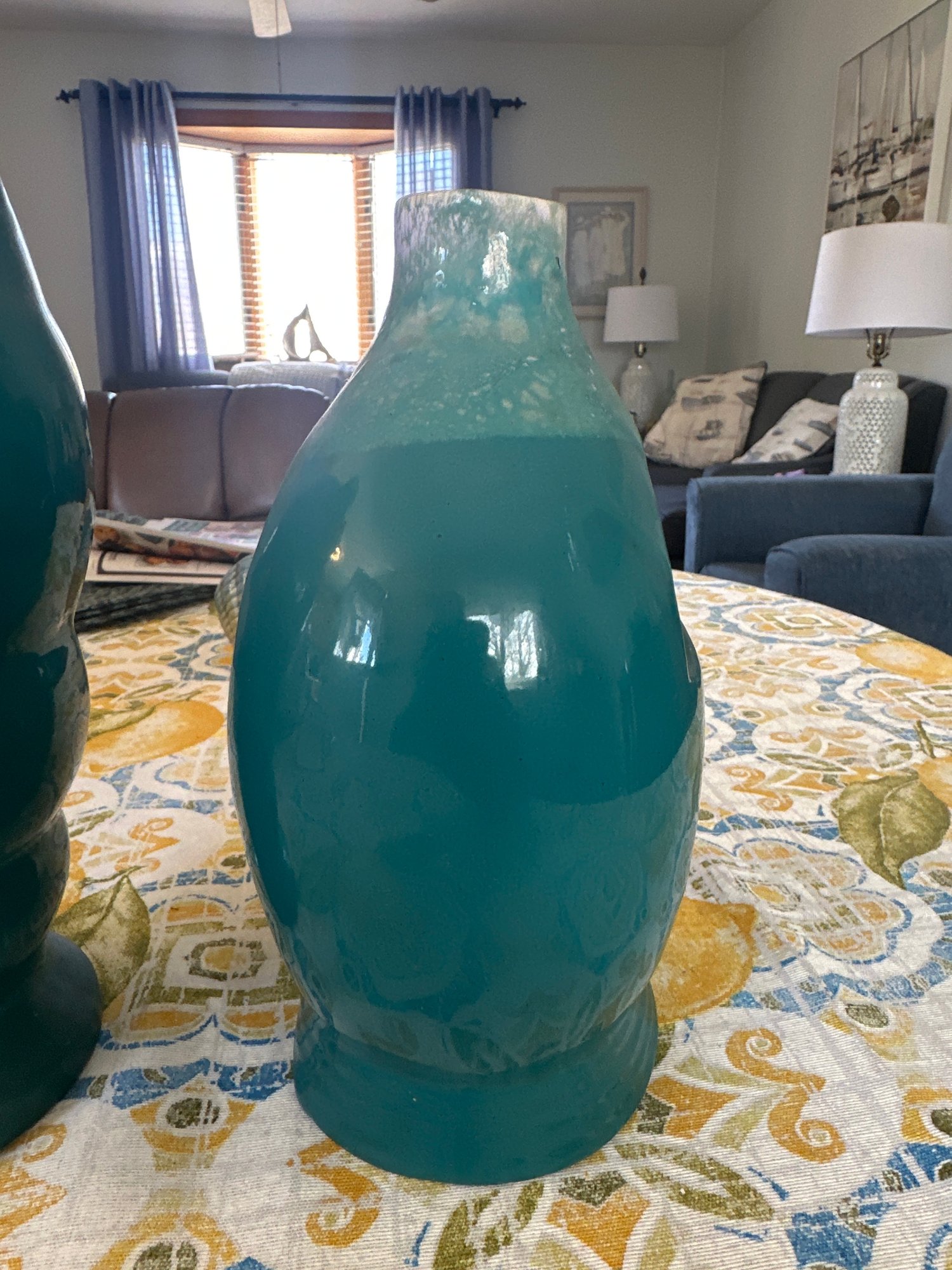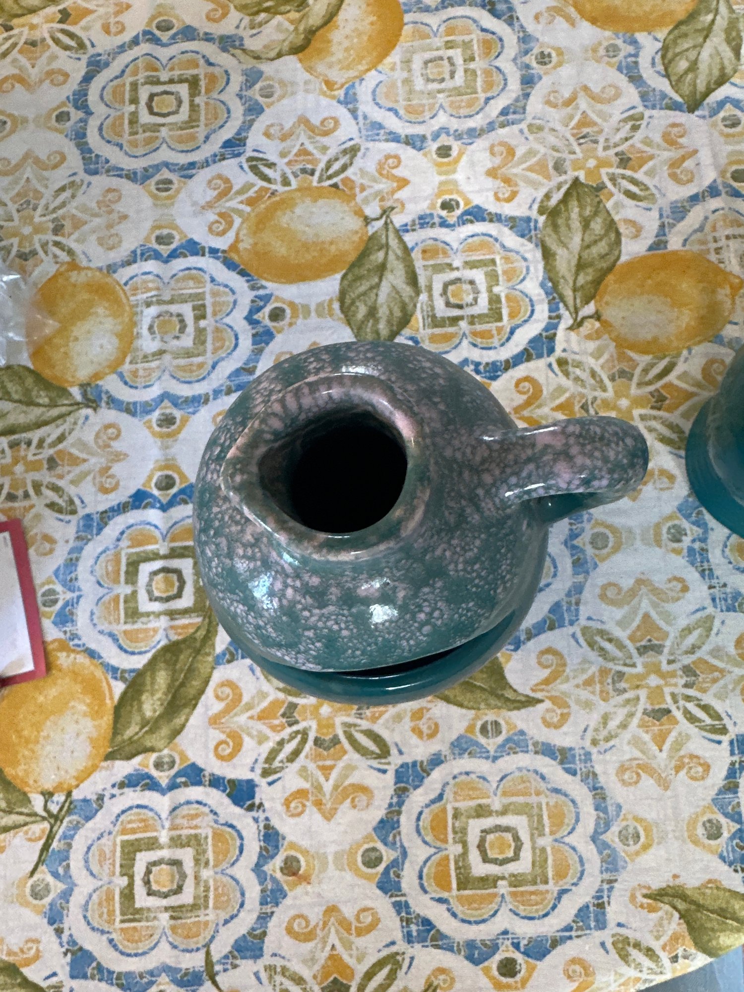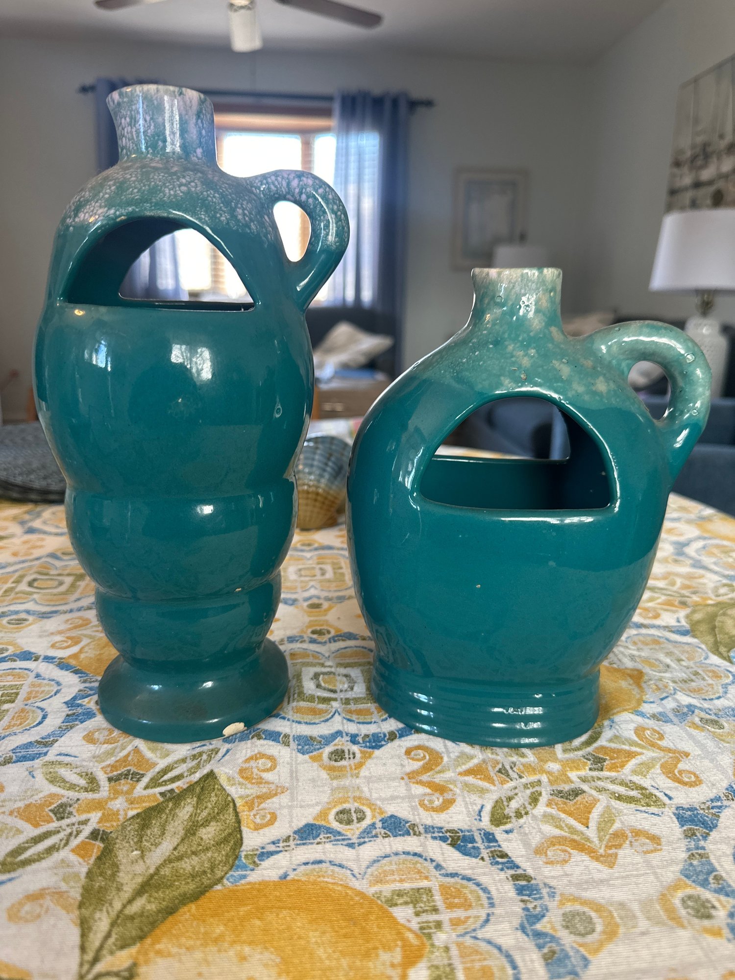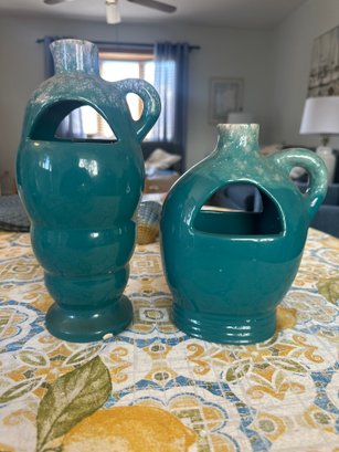 Vintage 11 In And 8 1/2 In Pottery Jugs Tall On Has Slight Chip At The Base Great Pair